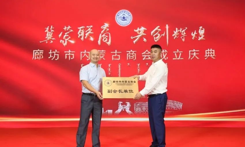 (廊坊市工商聯(lián)常務(wù)副主席魏建為廊坊市內(nèi)蒙古商會(huì)會(huì)長王曉軍授牌 )
